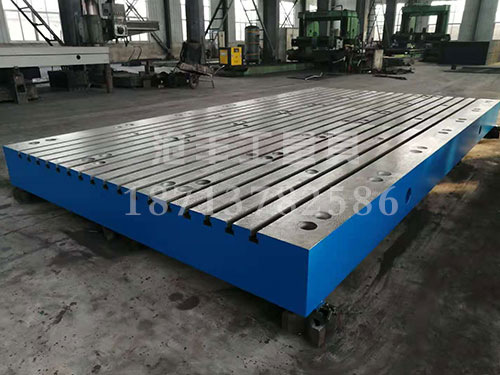 四、铸铁平台的外观处理、喷漆、包装、入库。铸铁平台在使用时要先进行安装调试。然后才可以使用。在没有安装调试合格的铸铁平台上工作是没有意义的工作,非工作人员的安装调试铸铁平台是违规的操作,有可能损坏铸铁平台的结构,甚至会造成铸铁平台变形,使之损坏,无法使用。所以使用前,我们要有的工作人员进行铸铁平台的安装调试,非工作人员的安装调试是违规的操作,要不可以采用。铸铁平台的生产过程中会出现一些产品缺点,只要采用正确的方法可以进行工艺弥补,铸铁平台工作面的缺点是不可以忽视的重要部位,铸铁平台主要的缺点包括:气孔、沙孔、夹沙、缩松等。铆焊平台的缺点在里有处理的详细规定。铸铁平台使用寿命和缺点有密切的关系。所以对铸铁平台的缺点做时要严格按工艺要求处理。对铸铁平台的外观尺寸图纸设计和实际会有一些误差,比如铸铁平台的长、宽、高对角线等,一般都在±0.02(a或b)之间,铆焊平台的高度要求:630×630的铸铁平台在220至140之间;1000×1000至800×800的铸铁平台高度在300至400之间;1600×1000以上的铸铁平台高度在400以上。铆焊平台的承载要求:铸铁平台的承载是指铸铁平台单位面积承受的重量后,铆焊平台的变形挠度。为了便于理解,我们可以看作铸铁平台放好工件后,在不影响正常使用的情况下,铸铁平台所能够承受的压力。比如:2000mm×4000mm的铆焊平台可以放置重量为64吨的工件,此铸铁平台的承载我们可以简单的看作:64吨÷(2米×4米)=8吨/每平米。当然铸铁平台的承载和他的实际设计和实际的生产加工还有比较密切的关系。在客户购买铸铁平台时经常和标准有部分的参数出入。我们知道铆焊铸铁平台是根据JB/T7974—2001设计,实际应用中还要考虑实际的需要。所以在设计时可以把铸铁平台的高度、工作面、筋板等做合理的变动,以适合于实际对于铸铁平台的需求。