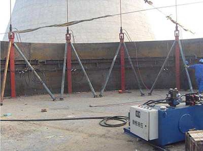 液压提升倒装法适用于各种容量的立式拱顶储罐的安装,尤其适用于5000m³及以上的大型拱顶储罐的倒装提升。