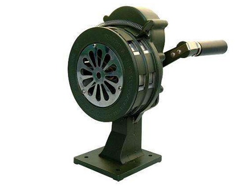 电动报警器无需电源,可以在无电源支持的都场所提供一种的报警。只需通过人工用手顺时针方向摇动手柄,速度达到初级(50-80转/分)就可达到理想的报警效果,发出的声音尖锐,震撼力大、穿透力强。警报声音大小取决于手柄摇动的速度,新款手摇警报在音窗口设置档板快门机制,可以迅速关闭音窗口,阻断声音,产生不同的信号。电动报警器特点:电动报警器使用与维护保养长期处于正常工作状态。如警报器发生故障不能正常运转,要安排有经验的师傅进行维修或直接与该公司联系解决。各型号电动报警器地操作只需要一个人就可以正常工作了。警报器在工作时,里面的鸣轮在高速运转,一般都在2000r/min以上,所以千万不要将手指或其它异物伸进正在旋转的鸣轮里面,否则会使人身伤害或对警报器造成损坏。警报器地使用应遵守《防空法》和有关警报器地使用规定,定期对警报器进行维护保养,使警报。