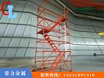 安全梯笼脚手架主要构件为立杆、横杆和斜杆,立杆上每间隔75CM设置有一排销库,销库由钢板冲压制成,通过用的夹具焊接在钢管上,焊缝长度大,具有高的稳定性,横杆的两端分别设置有与销库相对应扣接并带有插片插头,横杆插头与立杆钢管接触的范围大,具有双向锁紧功能,每个销库节点可同时可装4个横杆接头。销库节点结构正确,立杆轴向传力,使安全爬梯整体在三维空间结构、整体稳定性不错、并具有的自锁功能,能地提升脚手架的整架稳定强度和稳定度,并能良好的达到施工稳定的需要。普遍应用于房建、桥梁、立交桥、隧道、涵洞、烟囱、水塔、大坝及大跨度棚架等多种工程施工中。