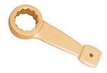 防爆敲击扳手通常在柄部的一端或两端制有夹持螺栓或螺母的开口或套孔,使用时沿螺纹旋转方向在柄部施加外力,就能拧转螺栓或螺母。防爆敲击扳手是一种常用的安装与拆卸工具,是利用杠杆原理拧转螺栓、螺钉、螺母和其他螺纹紧持螺栓或螺母的开口或套孔固件的手工工具。防爆扳手通常用碳素或合金材料的结构钢制造。