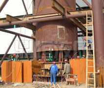 系统分析理论是储罐倒装法施工液压提升的。很多人在考虑液压提升时,都认为罐体提升过程是较危险的,实际分析时下降过程才是较危险的。罐体的提升液压缸通过钢丝绳传力给胀圈,钢丝绳只能传递拉力,不能够传递压力。如果提升时,有一、两个液压缸不工作,由于选用的液压缸的提升力有较大余量,系统能够基本正常工作;下降时,如果有一、两个液压缸不工作,其他液压缸都下降,数倍的负载集中在这个不下降的液压缸上,系统就会出现危险。现在,储罐倒装法施工采用的是先提升后围板的施工顺序,罐体整体下降操作时具有较大的危险性。