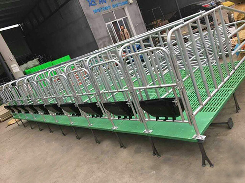 母猪产床是为母猪分娩和哺乳仔猪而设计的用围栏,它做为就是为了能保护仔猪,放止被母猪压死;能为初生小猪提供30℃左右的小气候和小环境;能提供良好的卫生条件,能防止活物积存和病菌的繁殖,减少仔猪疫病;便于对母猪和仔猪的管理。为仔猪提供一个活动的空间我们就设计了仔猪围栏,并防止仔猪跑出去。护栏有栅条式和隔板式两种。栅条式有利于通风和观察,但不利于防疫。隔板式有利于防疫但造价较不错,仔猪围栏的长为2.0-2.3米,宽为1.7-1.8米,高为0.5-0.6米,栅格间距不大于40毫米,仔猪补料槽和饮水器都装在围栏的后部,供粪便徘在后部的排粪区。