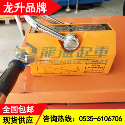 起重永磁铁又称手动永磁铁、永磁吸盘、起重永磁铁,为烟台开发区龙海起重工具有限公司自主品牌产品,具备出口品质,安全系数3.5倍以上,被广泛用于铆焊厂、钢结构件厂、造船厂、码头、工程建筑、模具制造等领域内搬运钢材、铁柱和圆柱的铁材。