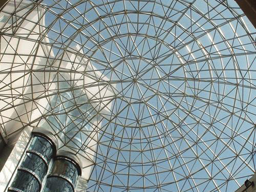 网架主要分三类:一类是由平面桁架系组成,有两向正交正放网架、两向正交斜放网架、两向斜交斜放网架及三向网架四种形式;二类由四角锥体单元组成,有正放四角锥网架、正放抽空四角锥网架、斜放四角锥网架、棋盘形四角锥网架及星形四角锥网架五种形式;三类由三角锥体单元组成,有三角锥网架、抽空三角锥网架及蜂窝形三角锥网架三种形式。壳型网架结构按壳面形式分主要有柱面壳型网架、球面壳型网架及双曲抛物面壳型网架。网架结构按所用材料分有钢网架、钢筋混凝土网架以及钢与钢筋混凝土组成的组合网架,其中以钢网架用得较多。
