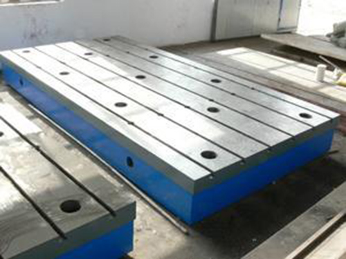 焊接平台/铸铁铆焊平板/铆焊平台是一种广泛应用于铆焊工艺的基础铸铁平板,在工作面上有用来清理铆焊时的一些铁渣和焊接废弃物的孔和用来固定焊接件的T型槽,材质一般为强度好铸铁HT200-300,工作表面硬度约为HB170-240,在经过两次人工处理包括人工退火600度-700度和震动时效,该产品的精度趋向稳定,性能能良好。铸铁铆焊平板/铆焊平台按国标GB7947-1999标准制造,规格大多在100*100至3000*6000之间,如有非标规格可以根据用户需求和提供的图纸制作定做。