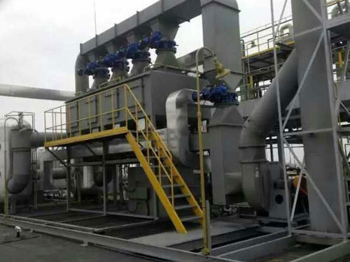 五、经催化氧化后的气体进入其它的陶瓷填充层,回收热能后通过旋转阀排放到大气中,净化后排气温度仅略高于废气处理前的温度。