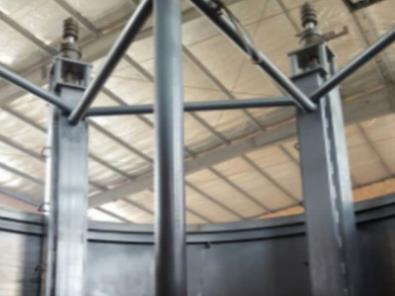 9)当整个气柜柜顶系统上升到指定的安装位置时,可以进行柜顶的安装工作,柜顶安装完毕可将挂钩装置与柜顶脱离,使挂钩装置随同活塞系统整体回落。