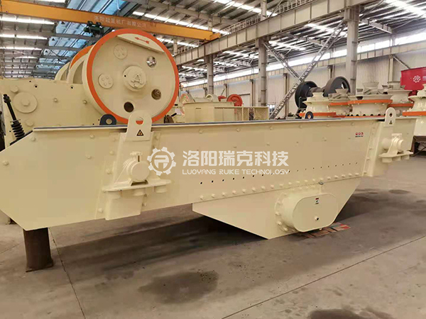 6:该设备有洛阳瑞克生产制造,作为砂石及矿产行业的初段工序中的重要设备工具,为保障物料持续、连贯的供应发挥重要作用,提升设备的破碎效率。该设备属于棒条给料机,梯级设计使得设备在生产运行过程中落差大,不宜堵料,具备良好的预筛分效果,为避免设备内部污染造成设备问题,采用稀有润滑结构实现一次加注定期更换即可,该设备生产制造完成被一家砂石企业订购将如近期发货