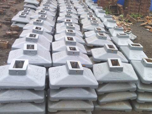 目前,针对于现场浇筑、安装、固定、形成方面,都需要一个具有优点方面的利用价值,安装道路护栏网底座,形成较加局域优点,并且利用价值全部的设备物质。现场需要经过测量、安放、固定、并且验收方面的工序,保障我们在每个环节使用当中,都可以形成较为稳定的态势。铸铁墩根据铸件结构、重量和尺寸大小,铸造合金特性和生产条件,选择合适的分型面和造型、造芯方法,合理设置铸造筋、冷铁、冒口和浇注系统等,以保障获得优良铸件。外型美观,防锈(表面工艺采用先整体镀锌后彩色粉末喷涂)抗压性能好,防盗,内有黑色罩壳,水泥不易外溢重量重,护栏稳固性好。铸铁墩主要是用在高速公路围挡施工焊装方面当中,在进可续管理施工安装,推动公路护栏网立较快来使用。就是较加具有稳定方面利用价值。