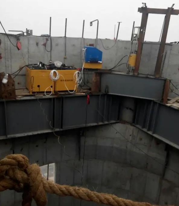 (3)提升杆贯穿上下卡头、提升滑块,并用CHE507焊条将端块与提升杆焊牢。在插入提升杆之前,应对提升杆进行校直。在插入提升杆时,将千斤顶处于松卡位置,即在上、下卡头的松卡螺母上旋到位时进行。注意保证提升杆与千斤顶基本同心,待正式工作时再将上、下卡头复位,使其处于工作状态。在滑道、滑块上均匀涂抹铿基脂二硫化钥润滑油脂。