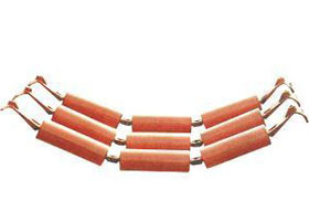 吊挂托辊组的结构特点是其构成托辊之间为柔性联接,托辊组通过抓手可与槽钢、钢管等刚性机架挂接,也可以与钢丝绳柔性机架挂接。抓手可以是刚性的,也可以是柔性的,其结构不同,成弧特点也不同。承载托辊一般三至五节,节数越多,柔性越好,成弧性也就越好。因吊挂托辊组因具有的 结构,由其作为支撑部件的带式输送机就具有不同于普通 固定式带式输送机的特点。