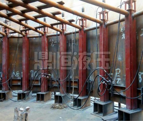 时液压顶升要注意提升杆要与千斤顶基本同心。待正式工作时才将上、下卡头复位,使顶处于工作状态。