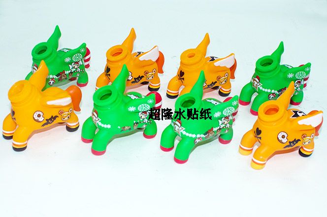3、低温转印水贴花纸:应用于玻璃艺品、乐器、木艺、塑胶玩具、铁皮工艺品、POLY工艺品、飞机模型、赛车模型、自行车、电话机、鼠标、键盘、电器、MP3/MP4外壳、制品机箱外壳等;