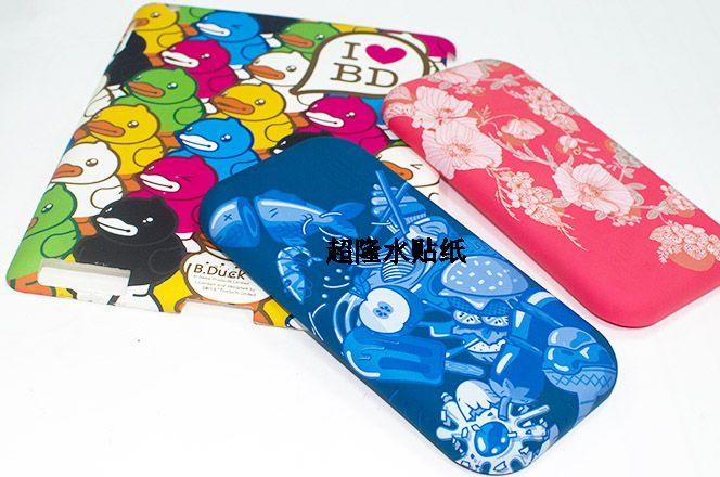 3、低温转印水贴花纸:应用于玻璃艺品、乐器、木艺、塑胶玩具、铁皮工艺品、POLY工艺品、飞机模型、赛车模型、自行车、电话机、鼠标、键盘、电器、MP3/MP4外壳、制品机箱外壳等;