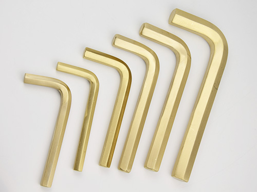 敲击扳手有很多种型号,具体包括防爆活扳手、防爆双头梅花扳手、防爆双头呆扳手、防爆呆梅两用扳手、防爆敲击梅花扳手、防爆高颈敲击梅花扳手、防爆敲击呆扳手、防爆凸型敲击梅花扳手、防爆弯柄敲击梅花扳手、防爆阀门扳手、防爆内六角扳手、防爆F型扳手、防爆勾扳手、防爆开桶扳手、防爆棘轮扳手等等。刃口类的工具应该放在水槽内轻轻接触砂轮进行刃磨,禁止用力过猛和接触砂轮时间过长。 在敲砸类工具实际应用中,需要清理现场杂物和工作面腐蚀的氧化物,避免第三者撞击。根据以上性能及应用,说明在正常使用过程中铝铜合金应用于常压设备及防爆条件要求不是那么严格的环境(如加油站、小型油库等)。而铍铜合金防爆工具性能的适用性(如炼油厂、转气站、采气厂、钻井队等)。各种产品使用前都需要要清理表面的油污,按钢制的工具参照说明书进行操作。