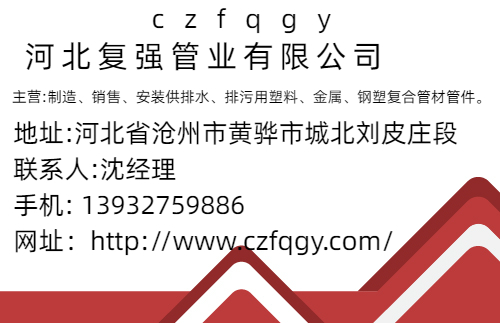 河北复强管业有限公司【http://www.czfqgy.com/】成立于2003年。主要生产PERT管,养殖育苗热水管,PERT2型温泉管,冷热水用耐热聚乙烯管,PE-RT冷热水管材,二型地暖管材,2代热力管材,直埋式保温管,温泉保温管等管材,近二十年来公司秉承:“制造优良产品铸就行业品牌”的企业理念,复强产品在雄安新区,北京新机场等建设项目中无故障运行多年。