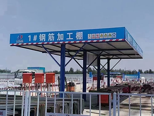 钢筋加工棚钢筋加工棚的节点部位均采用螺栓连接,高度和长度可灵活调节、配制,并具有可拆卸性的特点,可长期循环利用,所配备的轨道与龙门吊轨道通用,节约施工成本。