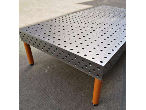 三维柔性焊接平台的通用性及多变好处焊接工装台三维柔性焊接平台的五个面都加工的有100*100间距的孔,并刻有网线,孔为通孔,是没有斜度及螺纹的,在三维柔性焊接工作台上面任意工件都可以使用夹具配合销紧销进行定位和夹紧。几个柔性焊接平台可以在任意五个面上直接连接在一起,进行拼接使用。这个模块化系统在安装、调整和夹紧工件中很好的体现了它通用的功能。它的优点在于实现了大型工件的应用上。而柔性焊接平台这里的柔性不是指他们柔韧度,相反它的材质硬度是及高的,抗击打能力特别强还,简单的说它这里的柔性是指的它的通用性、多变性。焊接夹具工装。