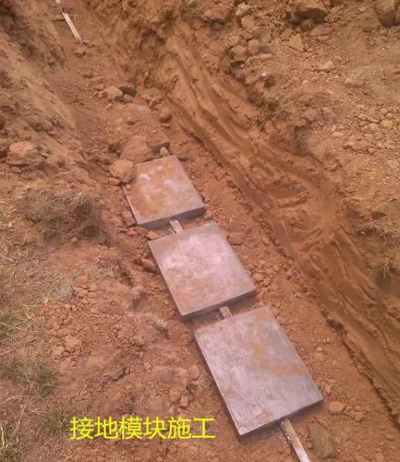 (1)在长度范围内,尽可能选择在土壤电阻率小的地方埋设方形接地模块。