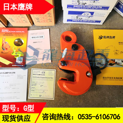 烟台开发区龙海起重工具有限公司郑重承诺:日本鹰牌钢板夹钳均为厂家货源,如有仿货以产品货值百倍赔偿!