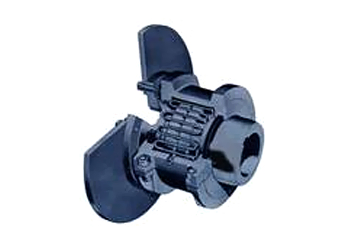 蛇簧联轴器以蛇形弹簧片沿轴向嵌入两半联轴器的齿槽来实现原动机与工作机的连接,运转时靠原动端齿面对弹簧片的周向作用力带动从动端来传递扭距。由于弹簧片有一定程度的柔性,在传递扭距时弹簧片发生一定的弹性变形,从而在很大程度上避免了工作机与原动机的共振现象。由于弹簧片采用优质弹簧钢经严格的热处理,并特殊加工而成,具有良好的机械性能,从而大大提高了联轴器的使用寿命。