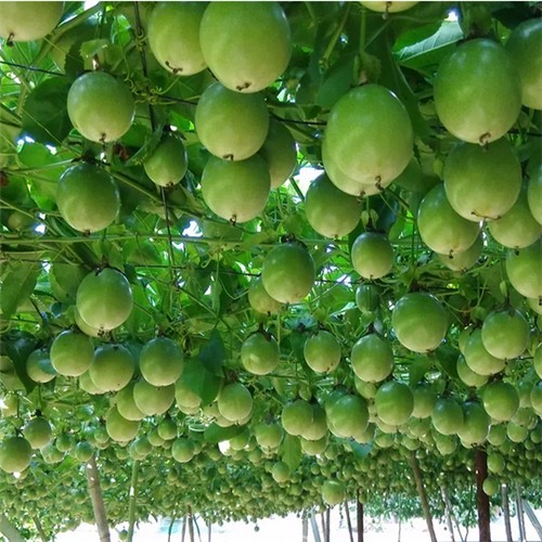 百香果<\/a>,又叫鸡蛋果,别名:洋石榴、紫果西番莲,拉丁文名:Passiflora edulis Sims.。<\/span>西番莲科<\/a>、<\/span>西番莲<\/a>属草质藤本,茎具细条纹,无毛。叶纸质,中间裂片卵形,两侧裂片卵状长<\/span>圆形<\/a>,裂片边缘有内弯腺尖细锯齿,外面顶端具1角状附属器;内副花冠非褶状,顶端全缘或为不规则撕裂状,淡黄绿色;子房倒卵球形,扁棒状,柱头肾形。浆果卵球形,无毛,熟时紫色;种子多数,卵形。原产大小安的列斯群岛,现广植于热带和亚热带地区。果可生食或作蔬菜、饲料。果瓤多汁液,加入重碳酸钙和糖,可制成芳香可口的饮料。入药具有兴奋、强壮之效<\/span>
