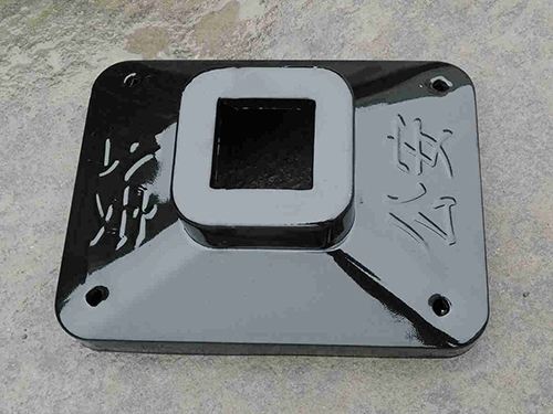 护栏底座以铸铁为材料,是目前应用较为广泛较为广泛的一种路面设施。护栏底座根据铸件结构、重量和尺寸大小,铸造合金特性和生产条件,选择合适的分型面和造型、造芯方法,合理设置铸造筋、冷铁、冒口和浇注系统等,以保证获得 铸件。护栏底座的特点:外型美观,防锈(表面工艺采用先整体镀锌后彩色粉末喷涂)抗压性能好,防盗,内有黑色罩壳,水泥不易外溢重量重,护栏稳固性好。护栏底座根据铸件结构、重量和尺寸大小,铸造合金特性和生产条件,选择合适的分型面和造型、造芯方法,合理设置铸造筋、冷铁、冒口和浇注系统等,以保证获得 铸件。