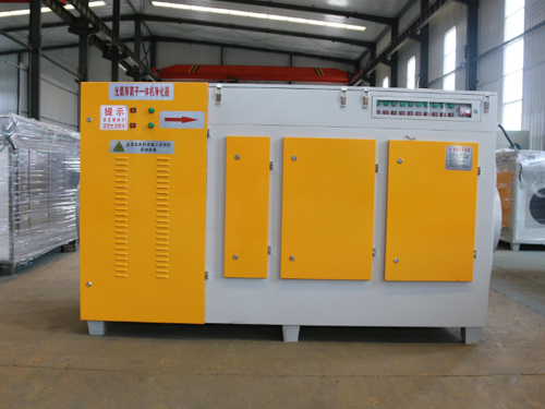 当废气进入等离子光氧一体机净化设备内时,先经过等离子体化学反应过程,即电子先从电场获得能量,通过激发或电离将能量转移到分子或原子中去,获得能量的分子或原子被激发,同时有部分分子被电离,从而成为活性基团;之后这些活性基团与分子或原子、活性基团与活性基团之间相互碰撞后生成稳定产物和热。(在外加电场的作用下,介质放电产生的大量携能电子轰击污染物分子,使其电离、解离和激发,然后便引发了一系列复杂的物理、化学反应,使复杂大分子污染物转变为简单小分子物质,或使不好的不好的物质转变成没有危害或低毒低害的物质,从而使污染物得以降解去掉。