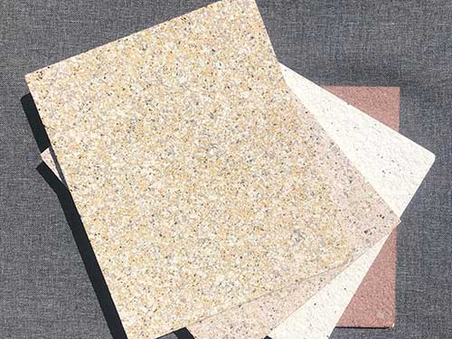 在经过定型牵引机将外墙无机仿石材装饰板板材定型为所需的厚度和宽度,经过切割成型即可。辅助设备还包括外墙无机仿石材装饰板表面拉毛机、边缘成型机、开槽机、自动包装机等。