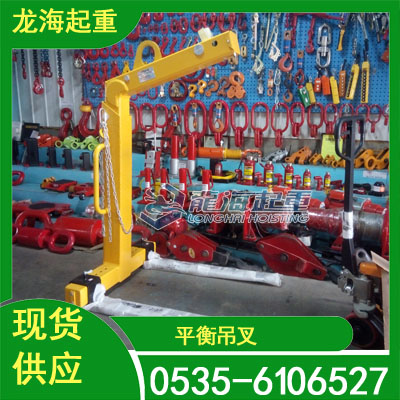 特点:托盘平衡吊叉的货叉宽度和立柱高度均可调节,平衡机构使空载或满载时均保持平衡,