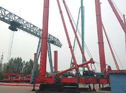 CFG长螺旋钻机桩架采用液压步履式底盘,自动化程度高,可自行行走及360度回转,设有四条液压支腿及一条行走油缸以辅助行走及回转同时增加施工时的整机稳定性,可整机进行转运。立柱为可折叠式箱型立柱,法兰连接方式,立柱采用两块高厚度锰板并且用大型折弯机折弯技术,经两道焊缝焊接而成同时立柱内部每隔60cm加焊四根加强筋固定,增加立柱抗扭抗弯性。立柱由两条变幅液压油缸控制其起降。钻进系统包括动力头与钻具,动力头的输出轴与螺旋钻具为中空式,桩机采用长螺旋成孔,可通过钻杆中心管将混凝土(泥浆)进行泵送混凝土CFG桩施工,长螺旋钻机即能钻孔成孔一机一次完成,也可用于干法成孔、注浆置换改变钻具后还可采取深层搅拌等多种工法进行施工。